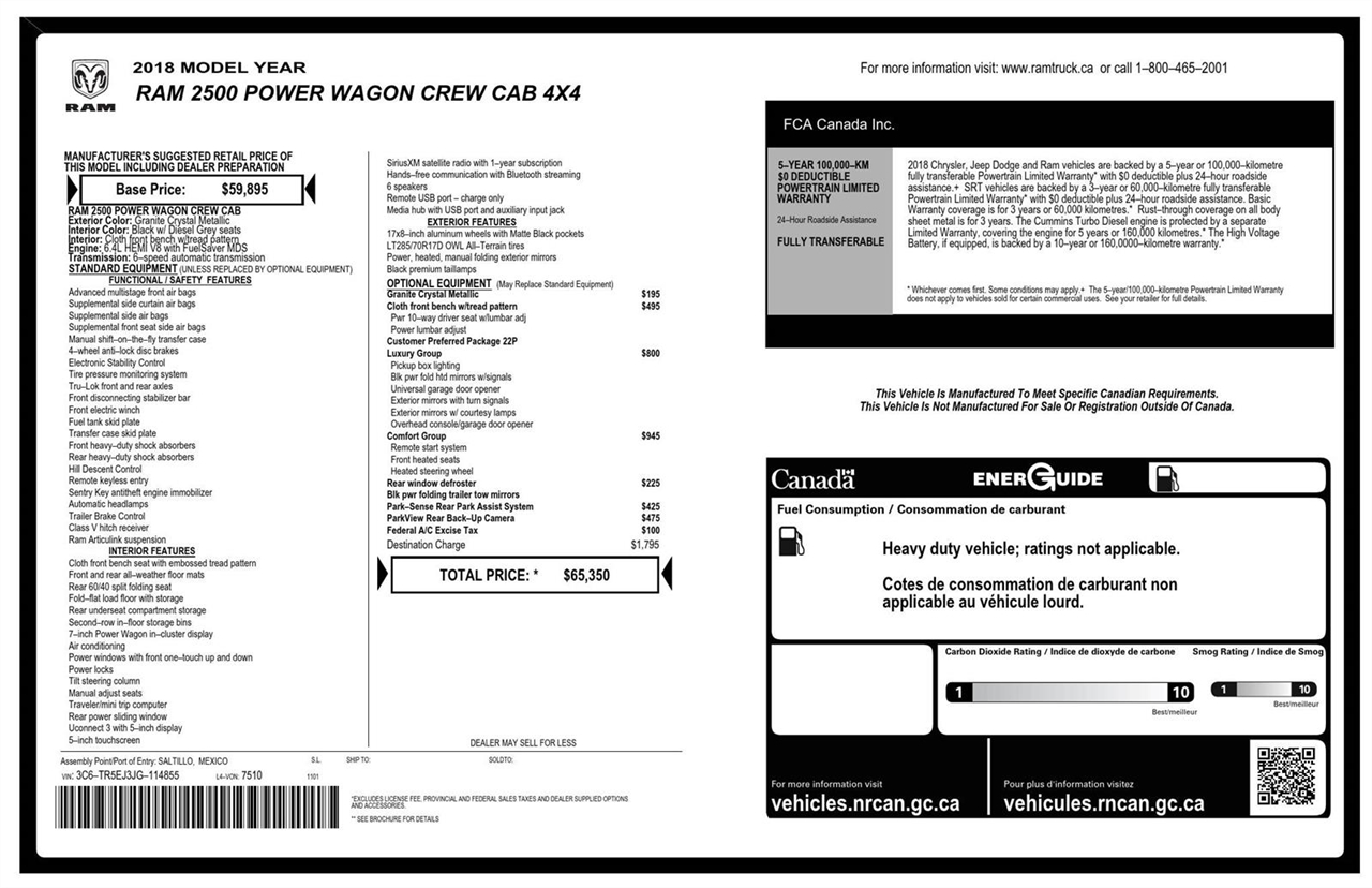 This GREY 2018 Ram 2500 Power Wagon with 103,139 miles has the style and comfort to fit your lifestyle! One Owner! This vehicle is equipped with:Comfort Group ($945 value)Front Heated SeatsHeated Steering WheelRemote Start SystemLuxury Group ($800 value)Overhead Console/garage Door OpenerSun Visors with Illuminated Vanity MirrorsAuto-Dimming Exterior Driver MirrorBlack Power Fold Heated Mirrors with SignalsGlove Box LampExterior Mirrors with Turn SignalsExterior Mirrors with Courtesy LampsPower Folding Exterior MirrorsRear Dome Lamp with On/off SwitchLED Bed LightingUniversal Garage Door OpenerQuick Order Package 22P Power WagonBlack RAM 2500 BadgeBlack 6.4L Hemi BadgeComfort The steering wheel rim is heated. Heated seats offer cool weather comfort by warming the seat quickly, before the air in the passenger compartment is fully warmed by the heater. The seating surfaces are covered in cloth.Convenience The keyfob has the ability to remotely start the vehicle's engine.Technology and Telematics Otherwise known as Bluetooth, this technology allows electronic devices to integrate with the vehicle systems without the need for a physical connection between them.It also has: Come in to see us today at 1025 E Dominick St. Rome NY 13440 or call 315-339-5320.