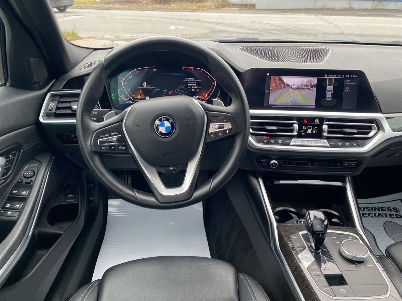 This Black Sapphire Metallic 2021 BMW 3 Series 330i xDrive with 41,099 miles has the style and comfort to fit your lifestyle! No Accidents! One Owner! This vehicle is equipped with:Driving Assistance Package ($700 value)Park Distance ControlActive Driving AssistantActive Blind Spot DetectionLane Departure WarningPremium Package ($3,200 value)Heated Steering WheelComfort Access Keyless EntryLumbar SupportHeated Front SeatsAmbient LightingHead-Up DisplayLive Cockpit Pro with NavigationSafety and Security The vehicle is equipped with a system that senses, and then prepares, the vehicle and/or occupants, for an impending forward collision. The vehicle constantly monitors the roadway in front of the vehicle and identifies and tracks pedestrians on an interior display. If the system determines a likely impact, it will automatically take preventative steps to avoid hitting the pedestrian. The vehicle is equipped with a camera that displays an image of the area behind the vehicle on an interior display.Technology and Telematics Without the need for a manufacturer specific app to be installed on the smart device, the vehicle infotainment system can access and control functions of a smart device physically plugged-into the vehicle. Apple CarPlay and Android Auto Compatibility smart device wireless mirroringIt also has: WHEELS: 18 X 7.5 V-SPOKE BI-COLOR ORBIT GREY, BLACK W/OYSTER STITCHING, VERNASCA LEATHER UPHOLSTERY, HIGH GLOSS FINE WOOD ASH GREY-BROWN TRIM, DRIVING ASSISTANCE PACKAGE, PREMIUM PACKAGE, HEATED FRONT SEATS, HEATED STEERING WHEEL, AMBIENT LIGHTING, PARK DISTANCE CONTROL, LIVE COCKPIT PRO W/NAVI Come in to see us today at 1025 E Dominick St. Rome NY 13440 or call 315-339-5320.